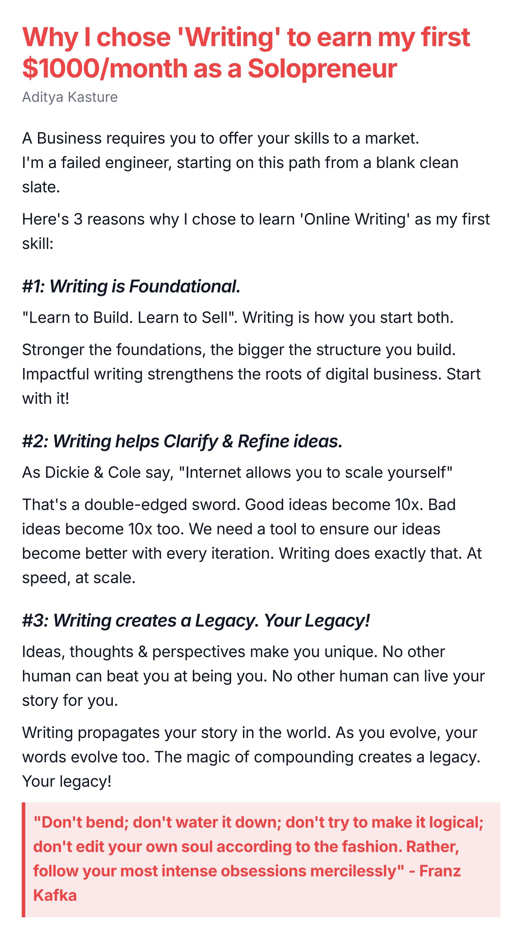 ⚡️ 24th December 2022, After 12 months of no job, saying NO to startups, MBA, and every other conventional career path, we discovered the journey of a Minimalist Entrepreneur. (Now, we call it a One-Person Business)
