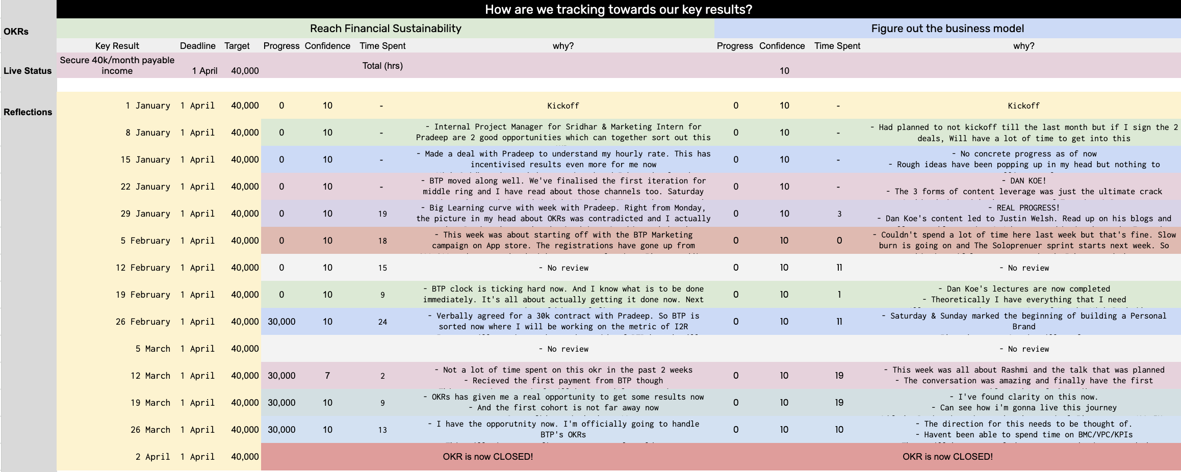 Now, things were real. And I started the year with solid goals based on the OKR framework I'd learned last year. Here's what they looked like.