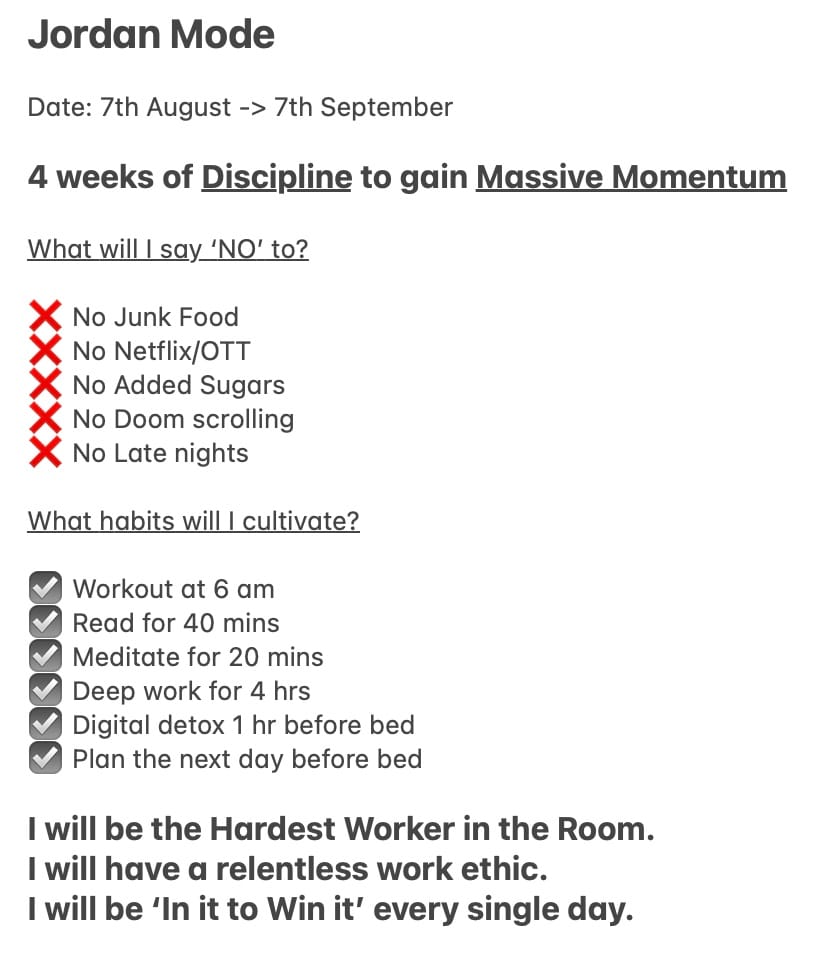 Whenever I want a period of hyper-focus and discipline, I'll come back to my apartment in Bangalore. For a Jordan Mode!